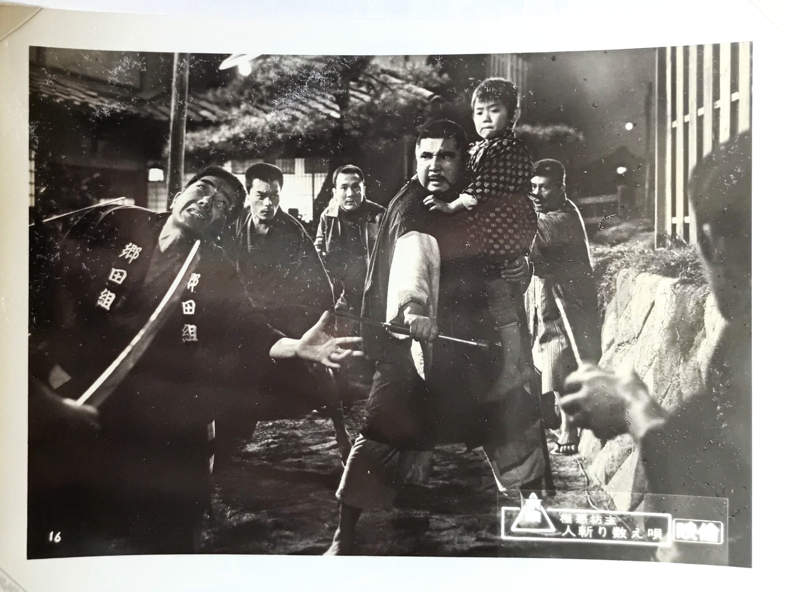 ゴクアクボウズヒトキリカゾエウタ/脚本:村尾昭・山本英明、監督:原田隆司(第1回監督作品)。殺陣:上野隆三。音楽:富田勲。主題歌:テイチクレコード若山富三郎「南無阿弥陀仏」。若山富三郎極悪坊主シリーズ第2作。喧嘩と博奕と女好きな破天荒な極悪坊主若山富三郎が善人を苛め抜き苦しめる任侠道に叛する悪ボス安部徹や天津敏に仕込み金剛杖棒術&居合斬りと拳法で懲らしめる任侠アクション。悪ボスを斬った後に菅原文太との対決がラストに来るパターンが出来上がる。舞台は大阪河内、旅先で知り合った渡世人小池朝雄の子どもを預かった若山真海、祖父の柔術家小沢栄太郎の元へ届けるが勘当した息子なので無関係と断られる。河内の闘鶏場の利権を狙う悪徳ヤクザ安部徹が絡んで小沢と対立する。真海のライバルである了達文太と小池が安部徹一家に草鞋を脱いだことで起こる悲劇。小池の息子を安部一家が誘拐して小池が小沢の身代わりとして犠牲になり小沢栄太郎は息子小池朝雄の死体を見て号泣。怒った真海が安部徹一家に殴り込む。小沢の弟子には御木本伸介・江幡髙志・小田部通麿。安部一家には用心棒天津敏の他汐路章・藤山浩二・関山耕司・志賀勝。特に居合斬り天津敏と若山の対決、片手が義手の関山耕司と若山の対決は時代劇的な立ち回りで見せる。誘拐された息子は了達が助けてライバルの存在感。尼に橘ますみ。宿屋の女将に春川ますみ。リアルタイムで観賞したのは高校2年生の冬。好きなシリーズでしたね。1968年11月30日〜12月12日豊橋東映、併映「緋牡丹博徒一宿一飯」。1969年4月9日〜15日松竹シネマ、併映「眠狂四郎 悪女狩り」【サイズ:B2ポスター&スチール写真】【年代:1968年】