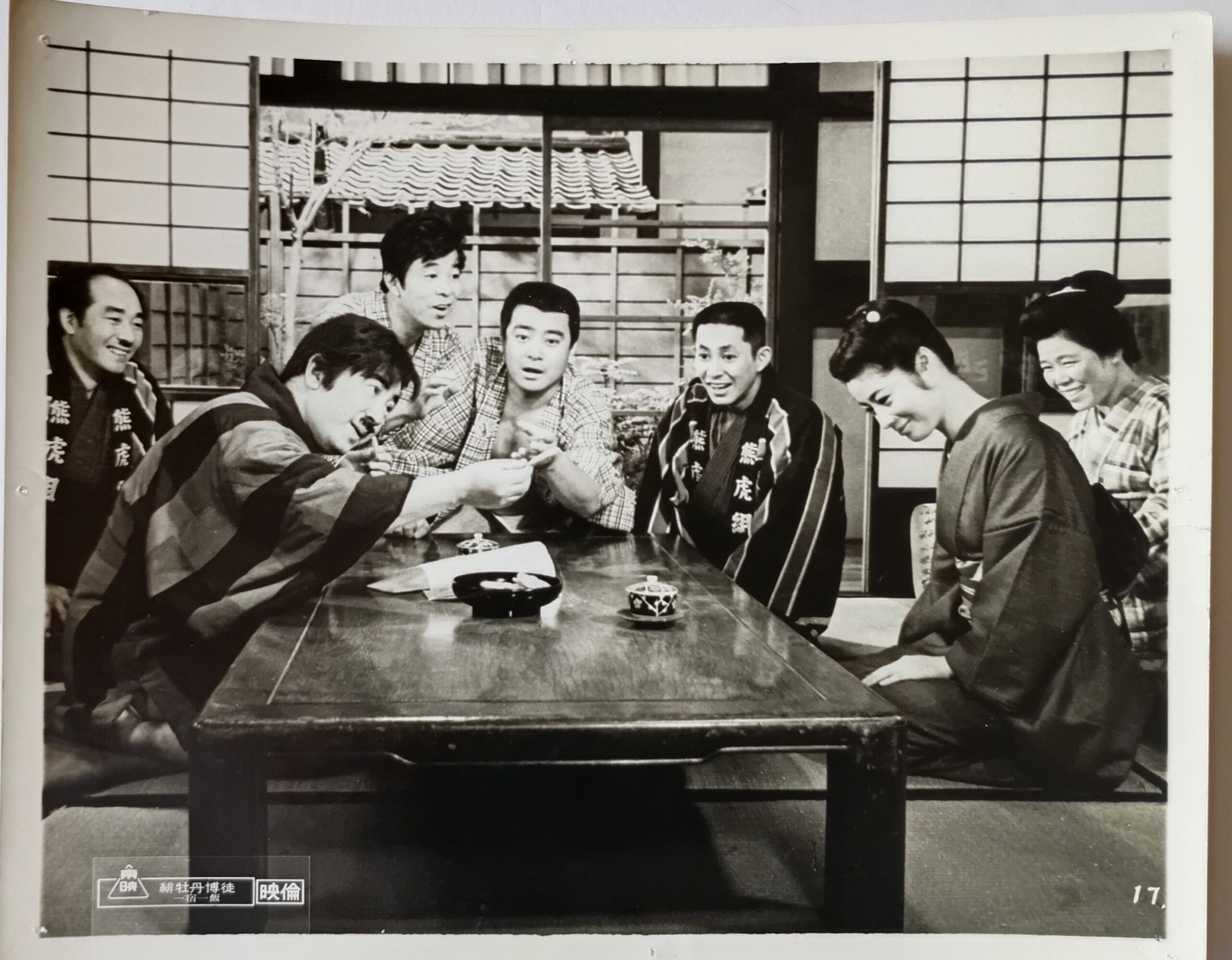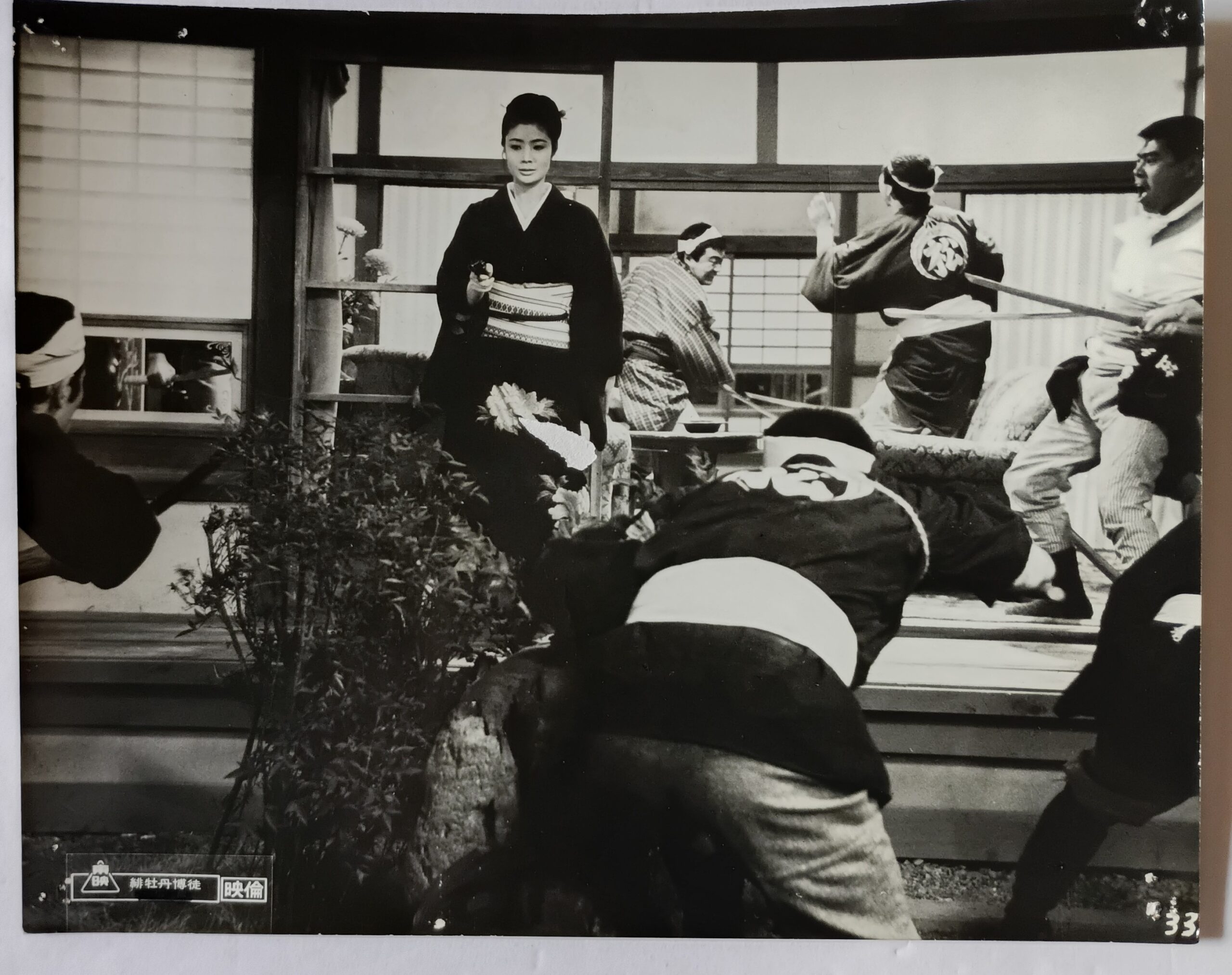 ヒボタンバクト イチシュクイッパン/脚本:野上龍雄・鈴木則文。殺陣:谷明憲。音楽:渡辺岳夫。監督:鈴木則文。大ヒッお竜シリーズ第2作。主題歌:藤純子 作詞・作曲 渡辺岳夫「緋牡丹しぐれ」。冒頭東映マークの後、お竜口上から始まり八木節背景に明治中期上州富岡と字幕が出て物語に引き込む展開が則文監督の演出が実に上手い。冒頭からワクワク感、オープニングの明るい八木節に高まりを覚えてラストはしんみり八木節で終わる味な構成、ゲストは鶴田浩二で特別出演。菅原文太が悪ボス笠松(天津敏)の用心棒でお竜と対峙、善玉戸ヶ崎一家親分には水島道太郎、罠にはまって射殺され、天津一家の度重なる悪行三昧に耐えかねたお竜が子分山城新伍を従えて主題歌を背景に連れて殴り込む。鶴田はお竜を助けながら犠牲で死ぬ。刺客に襲われたお竜が堀に投げ込むスローモーションが美しく鈴木則文監督の真骨頂とも言える場面に感動してお竜姐御に惚れ込んだ高校2年の秋でしたね。印象的なのはお竜が天津敏に犯された城野ゆきに言う右肩の刺青を見せての台詞「女だてらにこギャンもんば背負うて生きトッとよ、人を好きになるのは心、肌に墨は打てても心にやあ誰も墨を打てない」と女として説く純子菩薩。イカサマ女胴師に白木マリで情夫の西村晃の夫婦が一方の愛の姿、鶴田が二人を逃がした生家で八木節や人間らしい幸せについて純子に語る場面が芝居としていい。前作でお竜と義兄弟になった四国道後の熊虎親分に扮した若山富三郎が笑わせる。養蚕業で生活する百姓が霜害で桑畑が全滅して蚕を育てられないで、娘は身を売って田畑を悪どい高利貸しに取られる実情で反発した百姓を鎮圧したのが警察と明治政府だった「秩父事件」がモデル。個人的に好きな任侠映画の1本。1968年11月22日〜12月6日豊橋東映、併映「大奥絵巻」。1969年5月21日〜27日松竹シネマ、併映「博徒一代血祭り不動」【サイズ:B2ポスター&スチールロビーカード】【年代:1968】