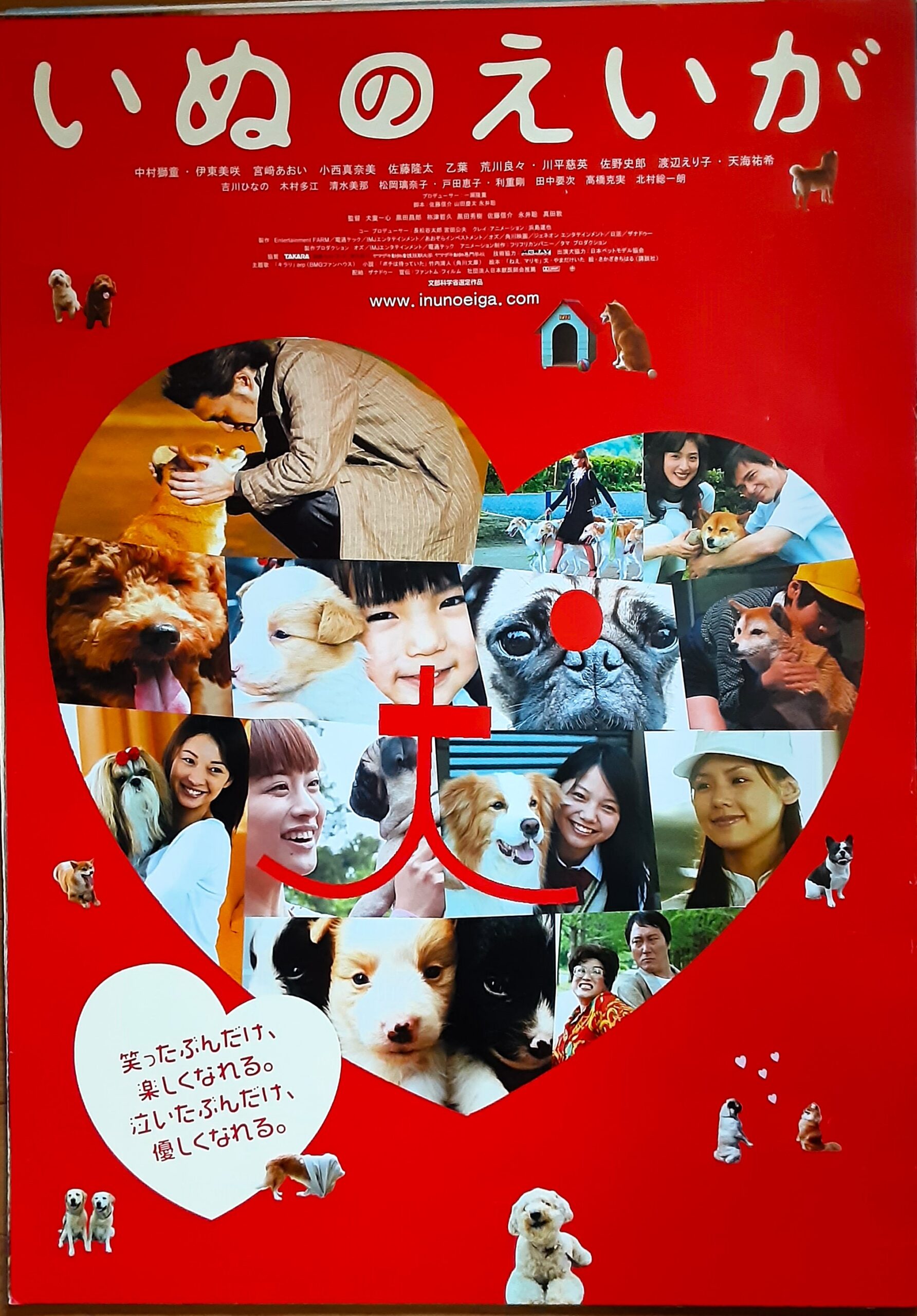 イヌノエイガ/脚本:佐藤信介、山田慶太、永井聡。監督:黒田昌郎、犬童一心、佐藤信介、黒田秀樹他。「いぬ」の魅力を前面に引き出し、そんないぬたちをめぐる悲喜こもごもの物語をリレー形式に描いた短編集したオムニバス映画。「ジョゼと虎と魚たち」の犬童一心、「修羅雪姫」の佐藤信介ら7人の監督が「いぬとひと」との様々な触れ合いの形を豪華出演陣と50種90匹におよぶ犬たちで11のエピソードに紡いでいく。主演は「いま、会いにゆきます」の中村獅童。