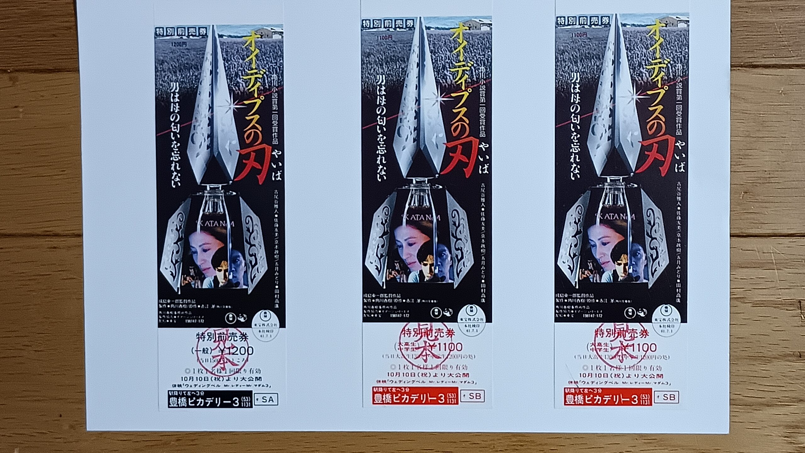 山口県下関にある大迫家で、名刀「次吉」の手入れのために訪れていた研師の秋浜泰邦が斬殺される事件が発生。泰邦と深い関係にあった大迫の妻の香子も自害し、その夫の耿平も次吉で割腹自殺を図った。残された三人の異母きょうだい、明彦と剛生は大迫家に、駿介は香子の実家に引き取られることになるが、剛生は家を飛び出し行方不明となってしまう。月日が流れ、明彦は母の跡を継ぐように調香師になり、そして駿介(古尾谷雅人)は京都でスナックを開いていた。俊介は明彦と剛生にそれぞれ再会し、事件のおぞましい真相を耳にする。複雑な血縁の網に操られた家庭。思慕と憎悪、父・母・兄弟、さまざまな想いが交錯する中、一振りの太刀が妖しい光を放ち、悲劇へと誘う。1986年10月10日公開豊橋ピカデリー3、併映「ウエディングベル」。【サイズ:ピカデリー前売りチケット】【年代:1986年】