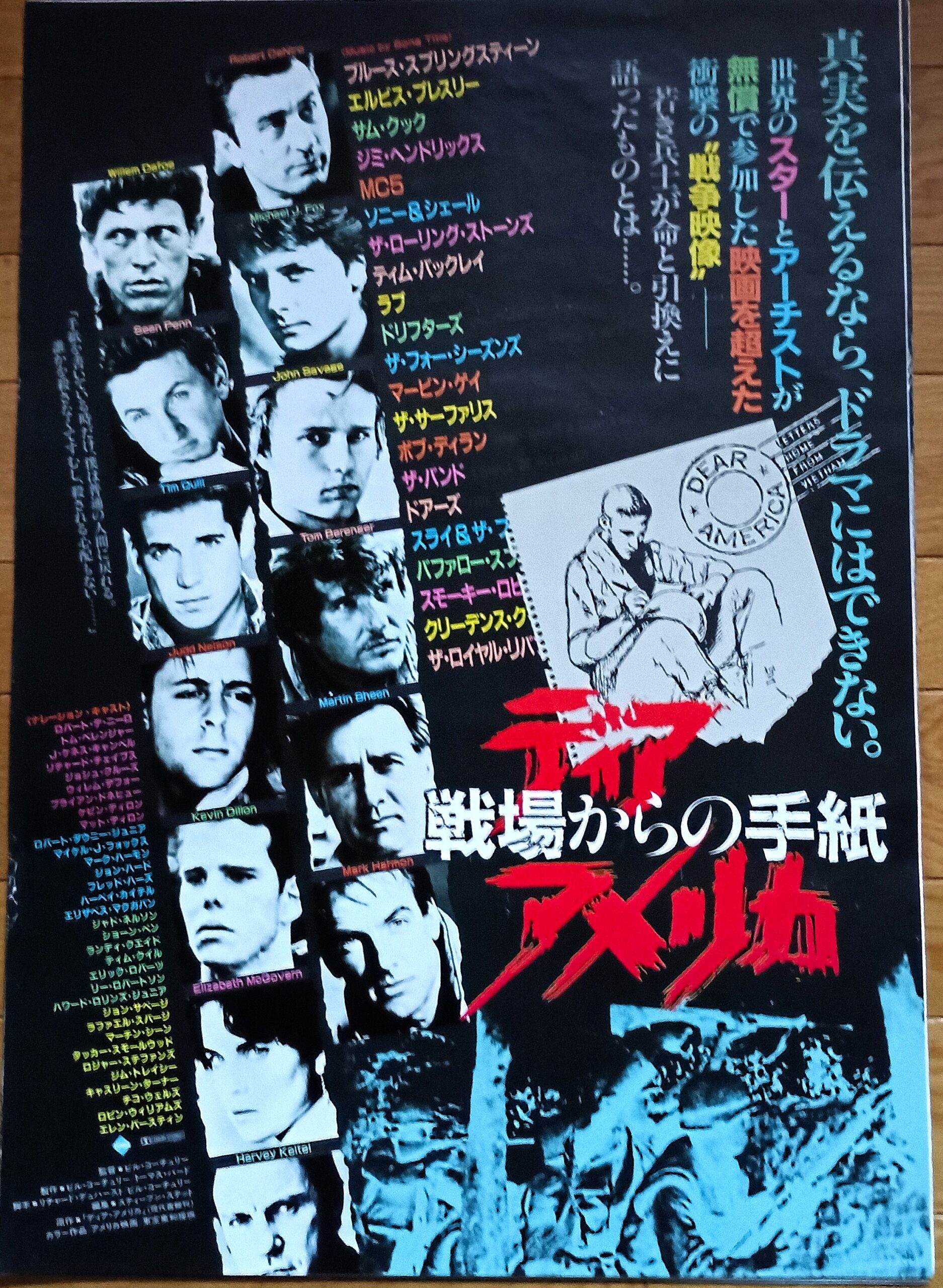 ディア・アメリカセンジョウカラノテガミ/音楽:トッド・ポーケルハイド。脚本・監督:ビル・チュリー。数多いベトナム戦争のドキュメンタリー映画の中でも、平均年齢19歳という若年兵士たちにスポットを当てた一編。彼らが家族に宛てた手紙を基に構成され、ハリウッド有名俳優たちによる手紙の朗読と当時の流行歌で綴る。意気盛んな兵士たちが戦争の泥沼化とともに次第に変貌し、政策とは関係なく死んでいく様が生々しい。映像はすべて実録。平均年齢19歳のアメリカ兵たちが戦場から送った手紙を、ハリウッドスターたちが実録映像をバックに朗読する。1988年12月17日公開、豊橋未公開。【サイズ:B2ポスター】【年代:1988年】