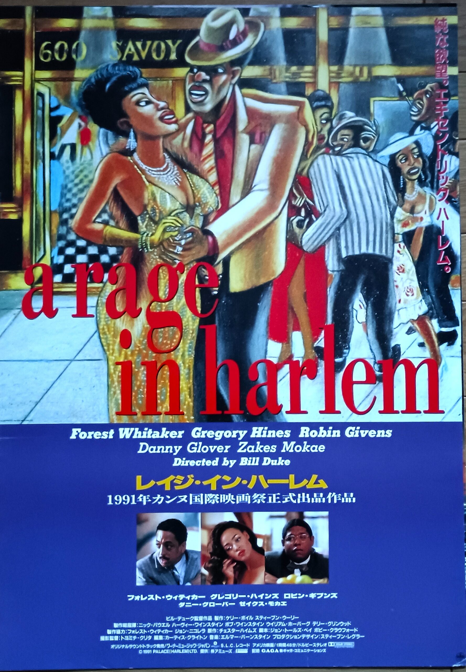 レイジ・イン・ハーレム/原作:テニスター・ハイムズ「イマベルへの愛」。音楽:エルマー・バーンスタイン。監督:ビル・デユーク。フオレスト・ウイテカー主演のブラックアクション。1950年代のハーレムを舞台に、純情男と小悪党どもの黄金を巡っての騒動をアクションと笑いで描くブラック・ムーヴィー。監督は「コマンドー」などアクション映画の黒人悪役スター、ビル・デューク。原作は黒人作家チェスター・ハイムスの刑事シリーズ「墓掘りジョーンズ&棺桶エド」もの第1作の「イマベルへの愛」。チャック・ベリー、リトル・リチャード、ファッツ・ドミノ、ジェイムズ・ブラウン、ロイド・プライス、エルモア・ジェイムズ、ボ・ディドリーらの数々のヒット曲は、当時のハーレムを匂わせる。音楽は、『荒野の7人』『大脱走』などのベテラン、エルマー・バースタイン。ジャズ、ゴスペル、ブルース、R&B、クラシックなど様々な音楽の素養を持つ彼は、50年代ハーレムをダイナミックに演出している。キャッチ「ファンキーでエキセントリック!黒人の視点で描いたブラック・ムービー」。1992年2月29日公開、豊橋での公開実績は不明。【サイズ:B2ポスター】【年代:1992年】