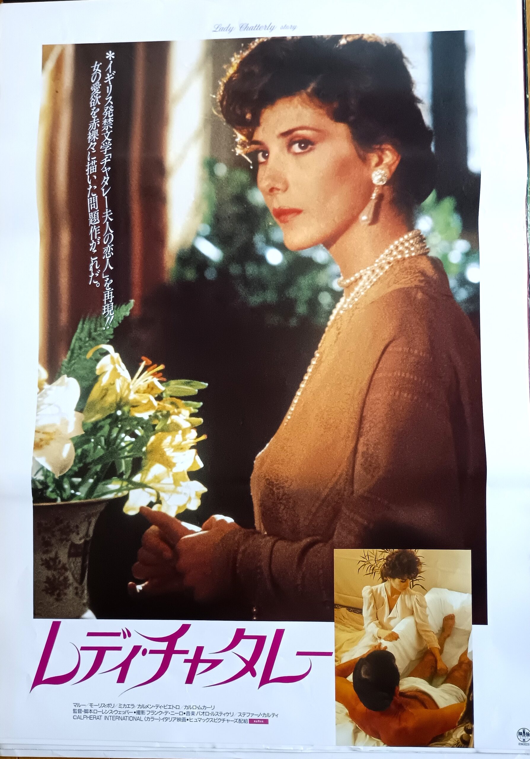 レディ・チャタレー/原作・脚本・監督:ローレンス・ウェーバー。マルー主演のイタリア製チャタレー夫人。チャタレイ夫人の恋人』の原作者D・H・ロレンスの前に、本当のチャタレイ夫人が現れて、小説にも出て来ない真相を語り始めるという、大胆な着想によるエロティック・ラブストーリー。監督は、「令嬢チャタレイ 愛の遍歴」(88)のローレンス・ウェーバーであるが、本名はジャンフランコ・パロリーニ。戦場での負傷が原因で不能になったクリフォード・チャタレーの妻コニーが、夫以外の逞しい男性と快楽の世界に溺れていくという話。哀愁感のあるピアノ伴奏のBGMで、ゆっくりたっぷり行為に及ぶ大人向けの本編83分イタリアらしい官能映画。1989年11月公開だが豊橋では未公開。【サイズ:B2ポスター】【年代:1989年】