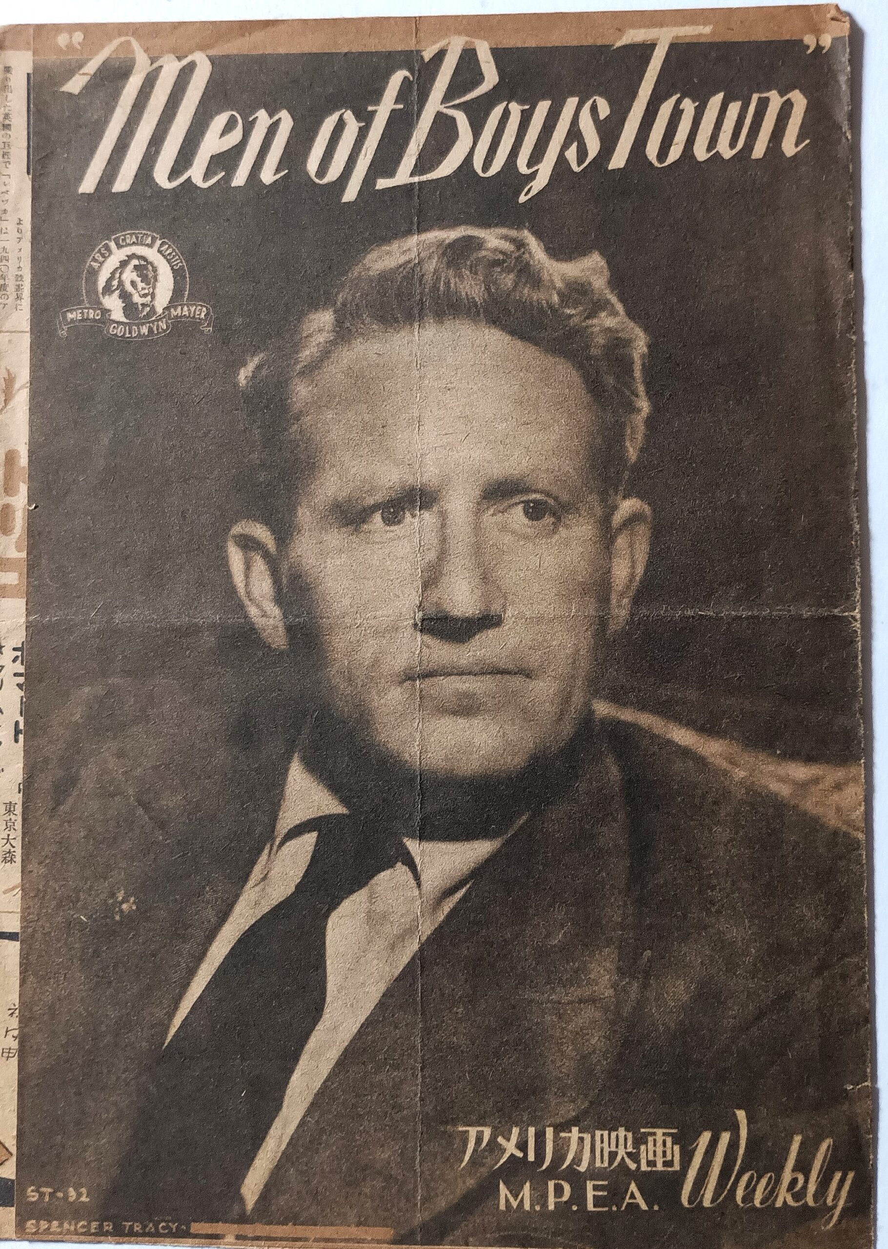 カンゲキノマチ/脚本:ジェームズ・ケビン・マッギネス。監督:ノーマン・タウログ。スペンサー・トレーシー主演。1938年「少年の町」の続編。監督や出演者はそのまま登板。借金して建設した感化院の改善問題がテーマ。感化院の看守を殺害した少年をボーイズ・タウンに収容して厚生させる物語と町の資産家に引き取られたその少年が感化院を脱走した他の少年を救いスペンサー・トレーシー神父の苦労を知るエピソードがテーマ。1941年製作で日本公開は1946年12月との事だが、豊橋での公開時期は不明。【サイズ:B5劇場プログラム表面&中面】【年代:1946年】