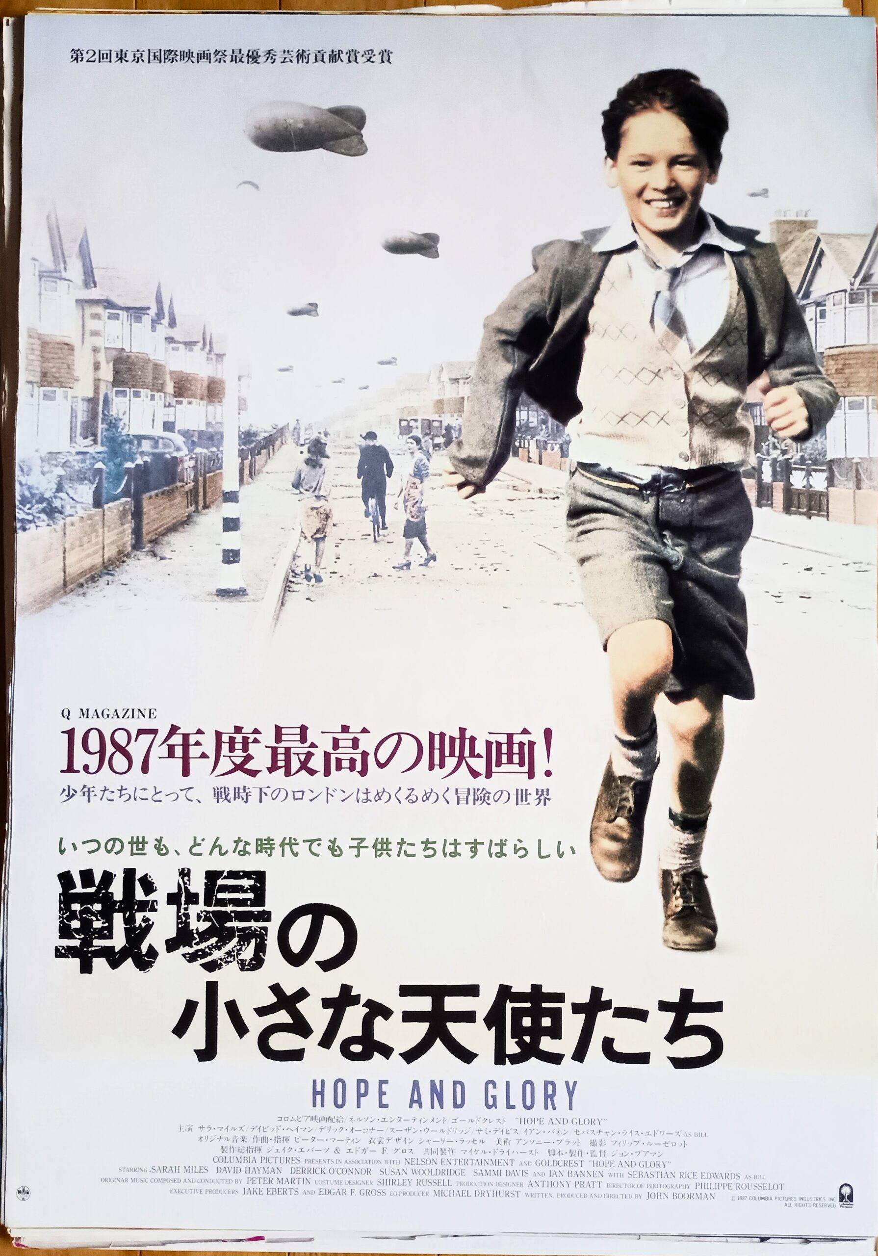 センジョウノチイサナテンシタチ/製作・脚本・監督:ジョン・プアマン。音楽:ピーター・マーティン。異才ジョン・ブアマン監督が、自伝的意味合いを含めつつ子供の視点で戦争を描き出した秀作ドラマ。戦時下のイギリスを舞台に、ある一家の子供たちの、戦争とは無縁の微笑ましい世界を描く。空襲によって、ロンドンの市民は次々と疎開していった。次第に人がいなくなる中でも、子供たちは無邪気にそれぞれの楽しみを見つけ出す。1939年9月、イギリス首相チェンバレンは第二次世界大戦のぼっ発を告げた。ロンドン郊外に住む少年ビル・ローハン(セバスチャン・ライス・エドワーズ)にとっても戦争は徐々に身近なものになってゆく。父のクライヴ(デイヴィッド・ヘイマン)は出征し、母のグレース(サラ・マイルズ)はビルと妹のスー(ジェラルディン・ミュア)を疎開させようとするが、駅で子供たちが嫌がったため、手許に置くことにする。ドイツ軍の爆撃が始まり、ビルの町の家は次々に焼け、その焼跡は恰好の遊び場になり、またビルの姉のドーン(サミ・デイヴィス)とカナダ兵のブルースとの逢引きの場所にもなった。第60回アカデミー賞監督・撮影・美術・脚本賞にノミネート、「ラスト・エンペラー」の総どりの年。1988年2月13日~29日豊橋ピカデリー3、併映「さよならを言わないで」。【サイズ:B2ポスター】【年代:1988年】