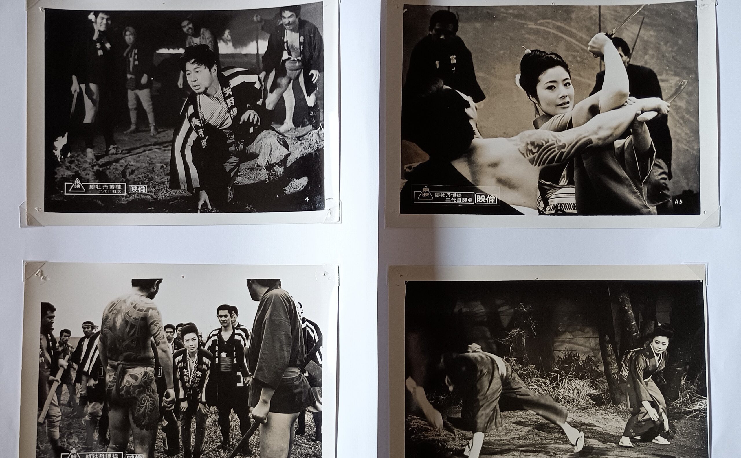 ヒボタンバクト ニダイメシュウメイ/原作:火野葦平「女侠一代」、脚本:鈴木則文、音楽:木下忠司。殺陣:谷明憲。監督:小沢茂弘。第1作公開から半年間で緋牡丹博徒シリーズも第4作となるほどの大ヒットで連作されて藤純子は東映のエースに成長、矢野組矢野竜子が熊本へ戻って矢野一家二代目襲名して筑豊本線鉄道建設と川人足との争いに巻込まれる。ゲストは高倉健で兄貴分若山富三郎扮する熊虎親分は登場しない分待田京介の不死身の富士松が活躍、清川虹子のお神楽おたかが助っ人になるが成金の遠藤辰雄や川人足の頭である石山健二郎が魅力的な出番で長門裕之は狂言回し。ゲストの侠客健さんが格好良い。芸者役で八代万智子が出演。1959年に松竹で同名原作を清川虹子で主演しただけに清川は感慨深い印象があったと推察。鉄道建設工事工事を横取りして川人足を追い出す悪ボス荒木田一家(天津敏)によって嵐寛寿郎親分・長門裕之・石山健二郎が犠牲になり、ラストはおたかが喧嘩状を叩き付けて矢野一家(お竜・待田京介・高宮敬二・大前均)が河原に船で殴り込む。駆けつける警察にはお神楽のおたか(清川虹子)が待ったを掛け、河原での対決場面で健さんが助っ人で大活躍してお竜ドスの舞い。天津敏が「殺すのには惜しか、一編抱いちみたかった」という台詞から始まる喧嘩。荒木田一家には小松方正・楠本健二・川谷拓三。矢野組には高宮敬二、大前均。川人足には阿波地大輔、有川正治。竜子は父の墓前でもう少し修行する報告をして旅に出る。小沢茂弘演出はツボを心得て小気味よい、時に藤純子24才、自分は18才の高校3年生の自分がすっかり顯さん・純子・若山・鶴田の任侠映画ファンになって義理人情世界に浸り、映画館を出りゃ誰と争っても五分でやれると信じて、受験そっちのけで映画にはまる時期だった。1969年4月10日〜21日豊橋東映、併映「妖艶毒婦伝 人斬りお勝」。1969年7月23日〜29日松竹シネマ、併映「関東おんな悪名」【サイズ:B2ポスター&スチール・ロビーカード】【年代:1969年】