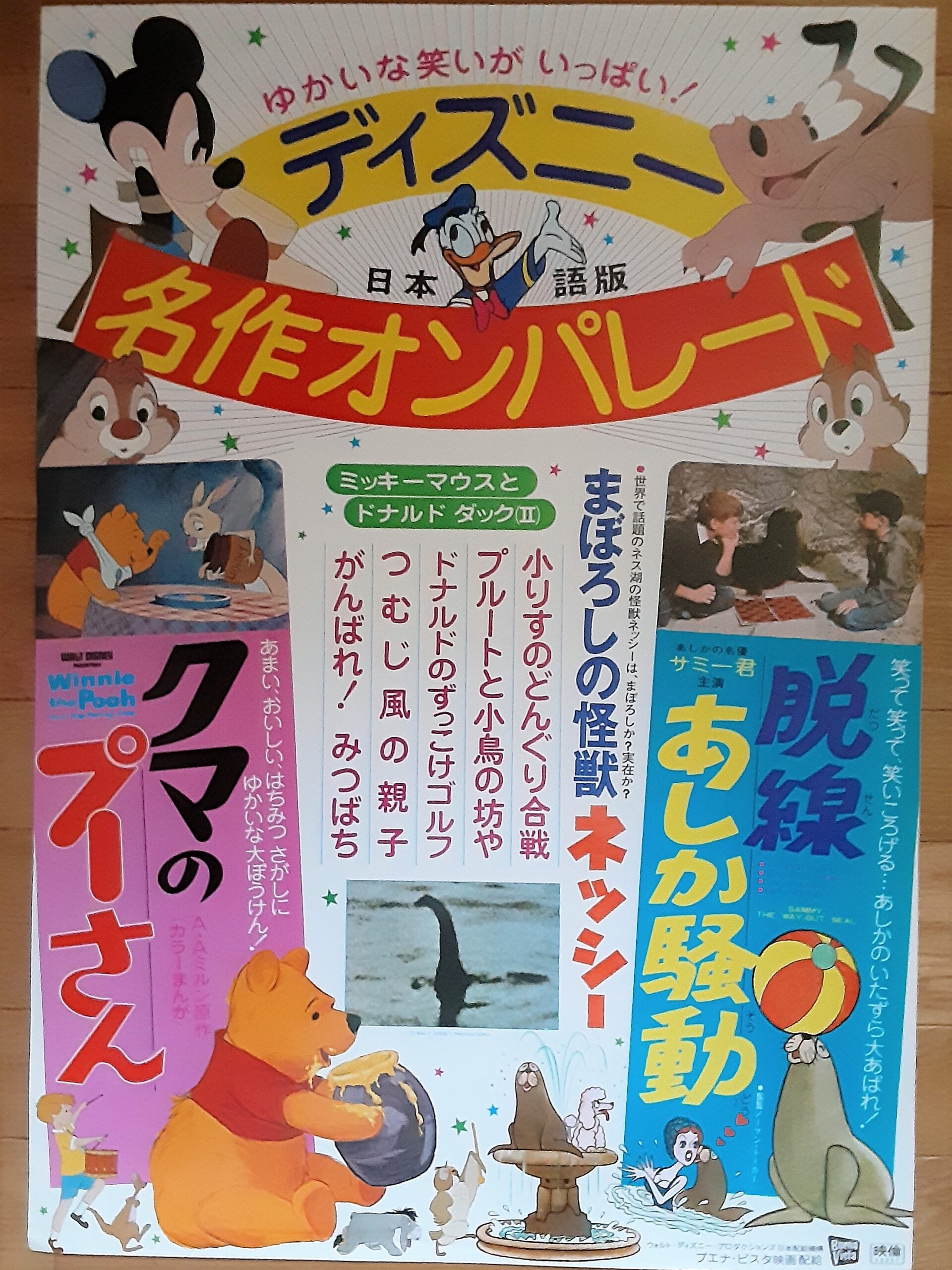 ダッセンアシカソウドウ/音楽:オリバー・ウォーレス。監督:ノーマン・トーカー。ディズニーお得意、ノーマン・トーカーがシナリオを書き、自ら演出したアシカを使った子供向けコメディ。アーサー(マイケル・マクグリービー)とピーティー(ビル・マミー)の兄弟は海岸で怪我をしたアシカを介抱してやり、サミーという名をつけて両親に内緒で飼うことにした。それは容易なことではない。水浴をさせねばならないことを知った兄弟は女友達のロッキー(アン・ジリアン)家のプールを借りることにして早速実行、ロッキーの愛犬アンダスもサミーと仲よしになった。ある夜、兄弟の両親はロッキー家のパーティーに出かけたが、兄弟が作ったシャワー装置を父親が知らずに栓を閉じてしまったので、サミーはプールが恋しくなり、そっとぬけ出して行った。会場はパーティーがたけなわ。ところがサミーが暗いプールではしゃぎまわり、酔払った連中に悪戯をしたので、パーティーは大混乱。翌朝その事件を知った兄弟は、サミーの仕業と知り、ロッキーの父シルベスターの事務所にサミーを乳母車に隠して連れて謝まりにいった。ところが、シルベスターは兄弟の話よりも自分の話に夢中。サミーがそのすきに高価な熱帯魚を食べてしまったから大変、兄弟は何も話さずに逃げ帰った。スーパーマーケットに隠れたが、乳母車がひっくりかえりアシカが出てきたので大騒ぎ。おまけに買物に連れてこられた犬がサミーを追っかけはじめた。そのうえアンダスがサミーの救援に来たので大変な騒ぎになった。この動物たちの友情を新聞が大きく報道、町の役員のシルベスターがサミーを町の中心に飼い、毎日芸をさせて観光客を呼ぼうと言い出した。兄弟は大反対である。そしてサミーを海へ返してやるよう説得した。淋しく帰るサミーを雌のアシカが迎えている姿を見て、みんな喜んだ。1964年8月19日~9月4日豊橋名画座、併映「王様の剣」。【サイズ:B2ポスター】【年代:1964年】